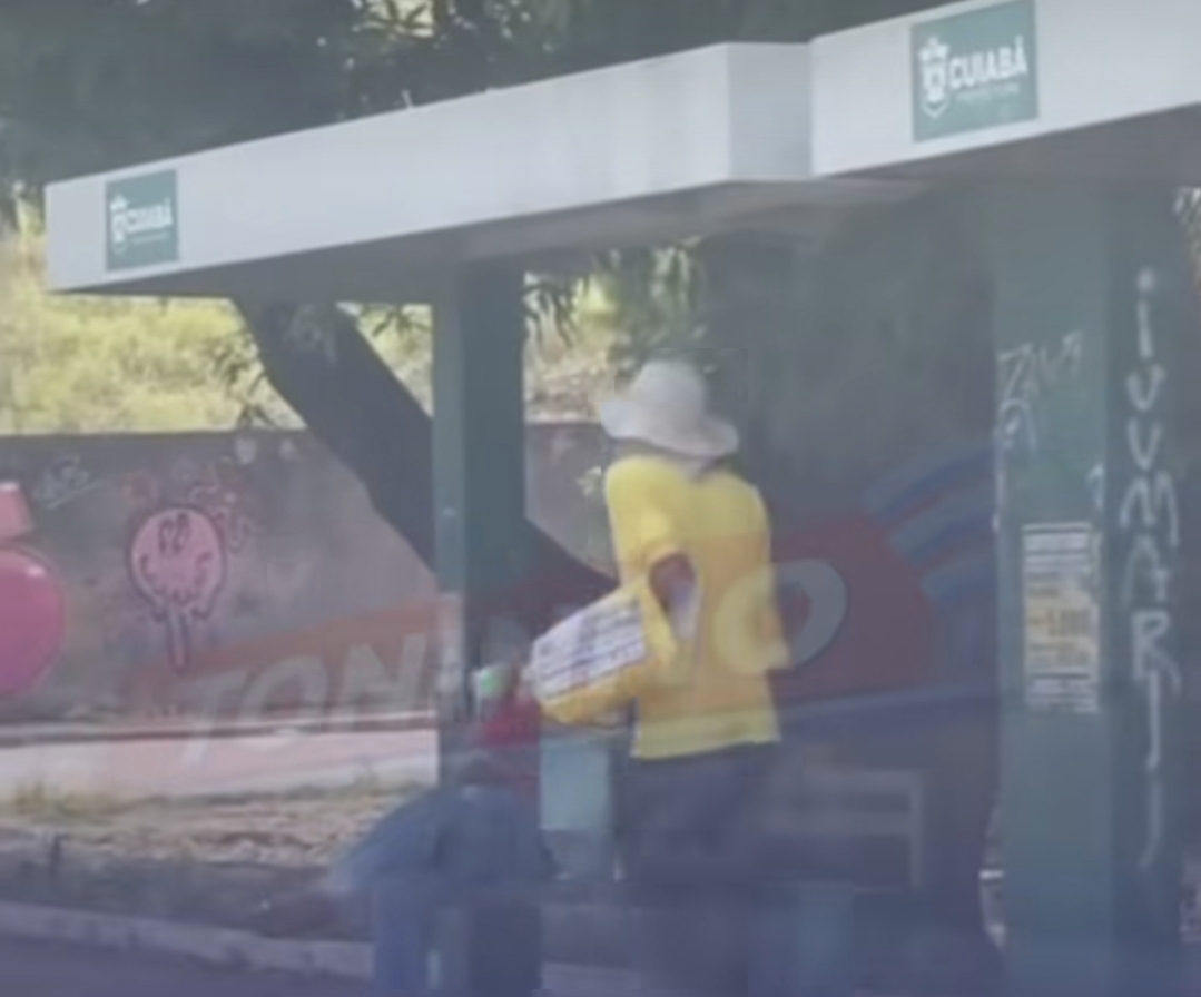 Um homem foi visto colando cartazes de empréstimos em postes e em um ponto de ônibus na região central de Cuiabá, na manhã desta quarta-feira (4), por volta das 9h30. A prática é considerada irregular e pode gerar multa de até R$ 4 mil. Mesmo assim, ele agia com tranquilidade, sem aparente receio de fiscalização.