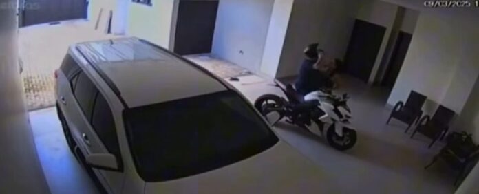 MAIS IMAGENS: Treze dias antes de ser assassinado a facadas em uma distribuidora em Sorriso, Ivan Michel Bonotto, de 35 anos, foi flagrado por câmeras de segurança saindo da casa da médica Sabrina Iara de Mello após um encontro amoroso. As imagens, gravadas em 9 de março, mostram Sabrina em um baby doll preto se despedindo de Ivan, que troca carícias com ela, sobe em uma motocicleta e ainda faz um “joinha” em tom debochado para a câmera antes de ir embora.