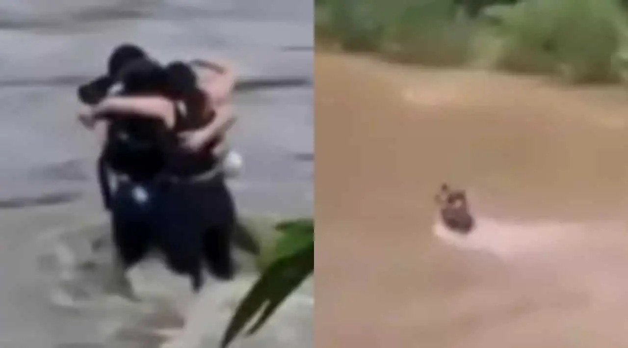 Vídeo mostra amigos se abraçando antes de serem arrastados por forte correnteza; veja