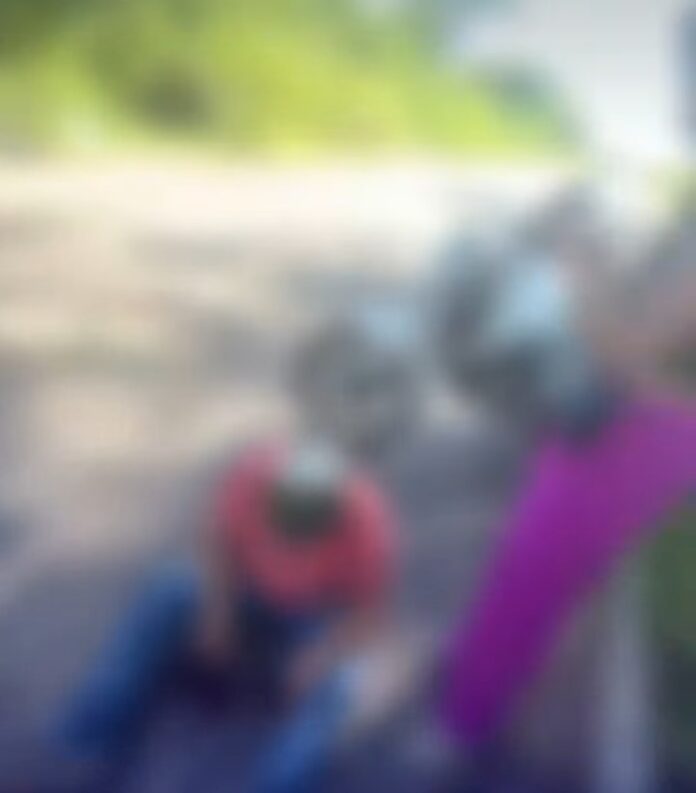 Com o impacto, ele caiu na pista e fraturou dois dedos da mão. A passageira também caiu, mas sofreu apenas ferimentos leves no joelho.
