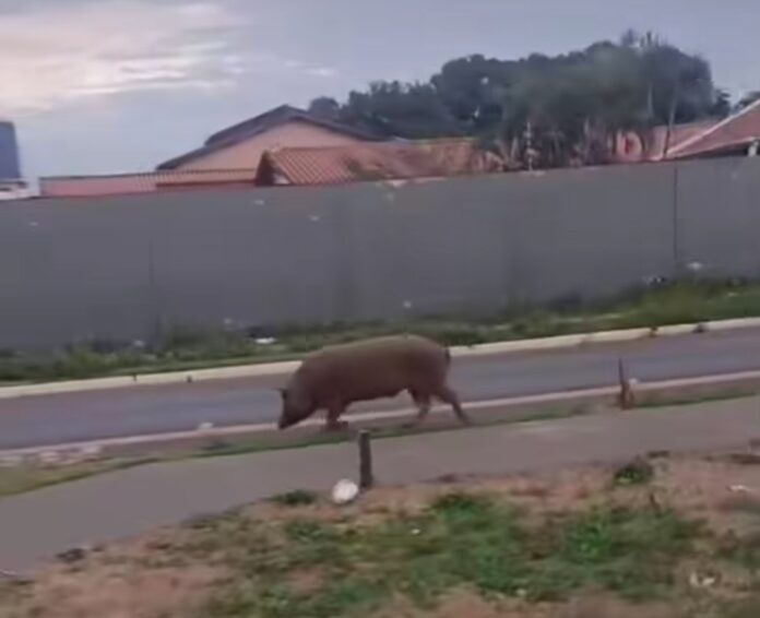 Vídeo: Motoboy flagra porcos circulando em avenida de Várzea Grande