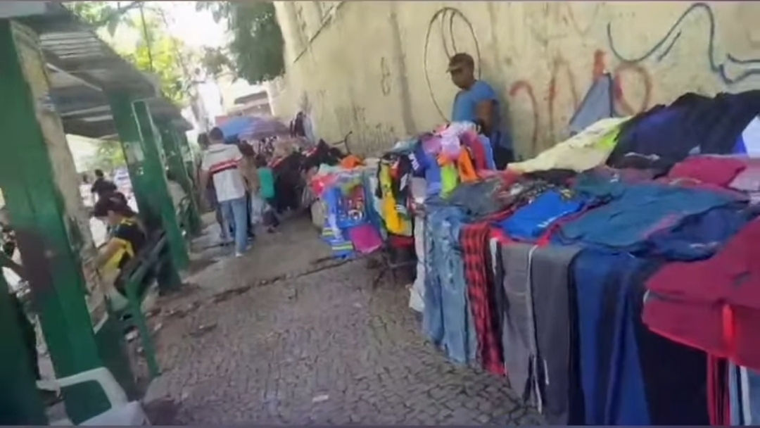 Um telespectador da TV Toninho de Souza gravou vídeo mostrando o Centro de Cuiabá movimentado neste sábado. As imagens registram camelôs trabalhando na calçada da Rua 13 de Junho. Eles haviam sido retirados pela prefeitura e realocados para uma via específica, com compromisso de não retornar.