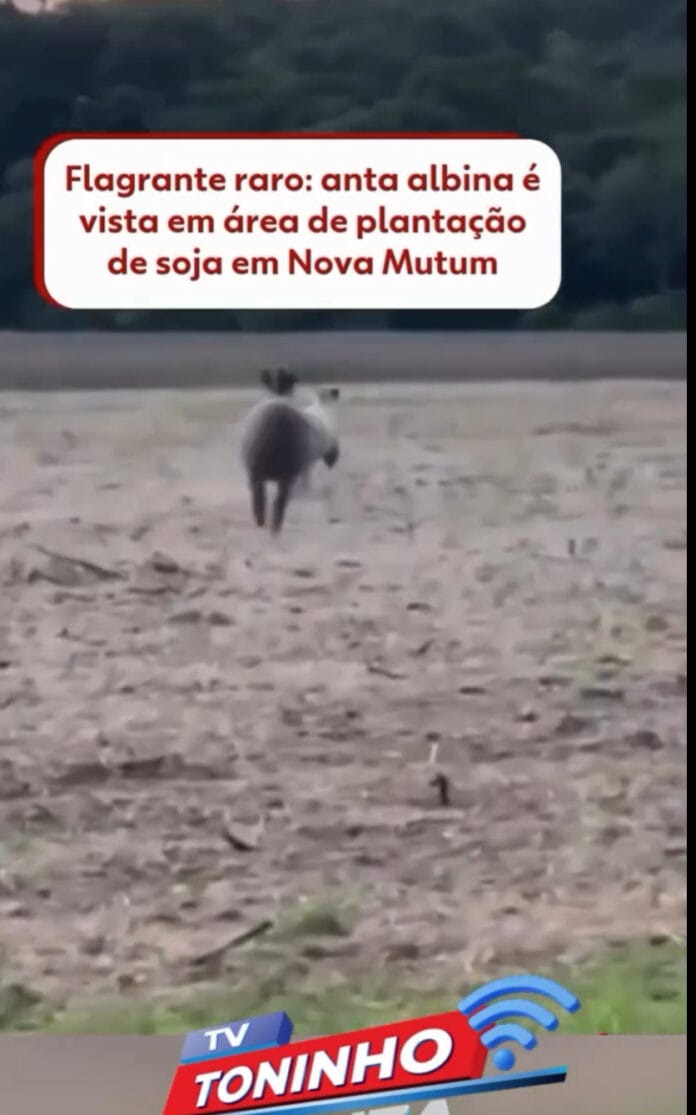 VÍDEO: Uma anta albina foi flagrada em uma plantação de soja em Nova Mutum, no domingo (16).